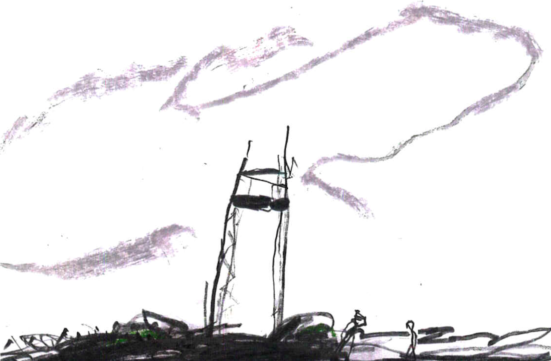 We see drawings by Hilke Krohn, who depicts the Groenoord Action Camp, the nature reserve surrounding Ruigoord, in 1997. For months on end, Hilke drew the environmentalists of GroenFont in their struggle to preserve nature and oppose the arrival of industry.