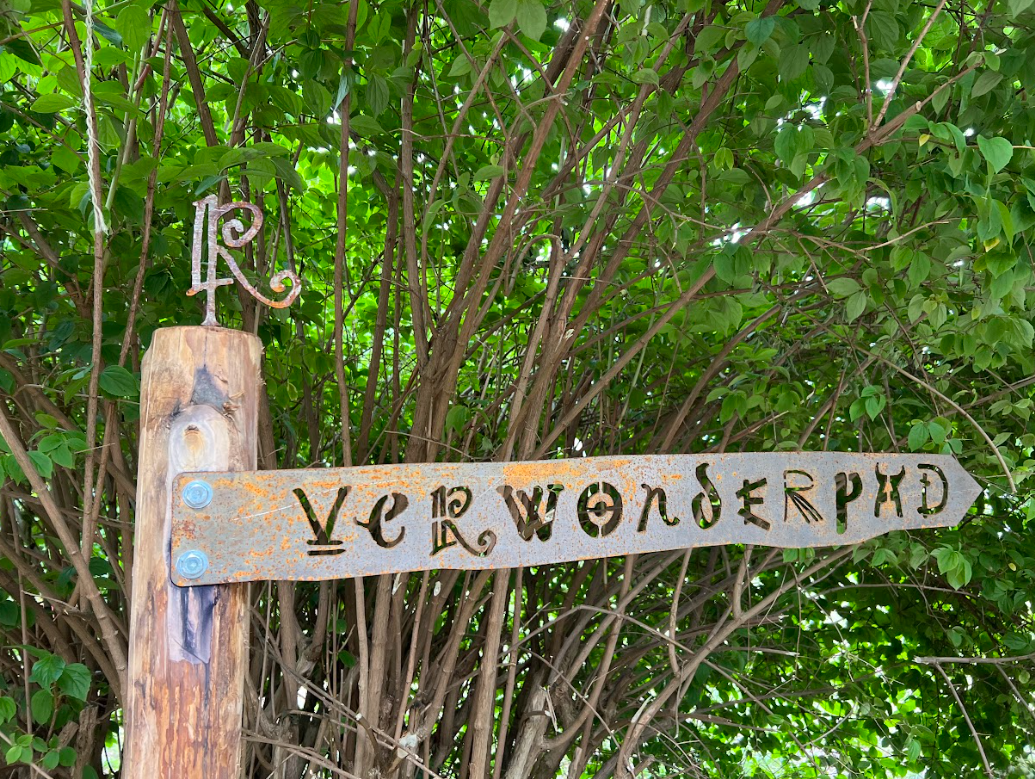 Designer and letter artist René Knip developed his own alphabet for Ruigoord – Oase van Verwondering. In collaboration with various people from Ruigoord, this new and unique typeface was developed, reflecting the diversity of the village. The result was created from co-creation: playful and eclectic, like the motley crew Ruigoord is. You will see the dancing letters of this Ruigoord alphabet throughout the village, on signs, at routes and locations.