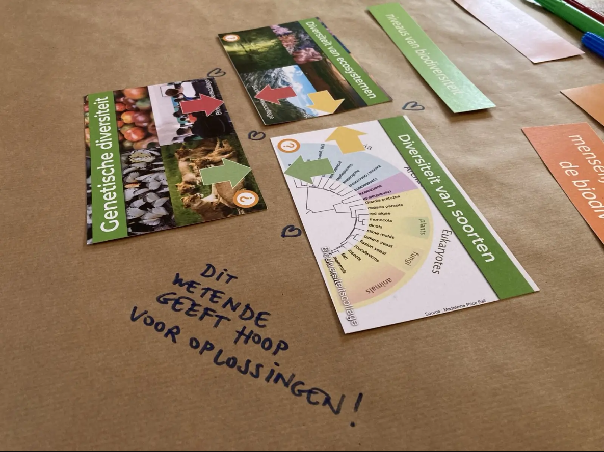 In de Biodiversiteitscollage workshop ontdek je samen met je medespelers hoe biodiversiteit is opgebouwd en wat de belangrijkste oorzaken zijn van biodiversiteitsverlies. Je gaat vervolgens met elkaar in gesprek over concrete acties om positieve impact te maken. De workshop is gebaseerd op de laatste rapporten van het Intergouvernementeel Platform voor Biodiversiteit en Ecosysteemdiensten (IPBES).
