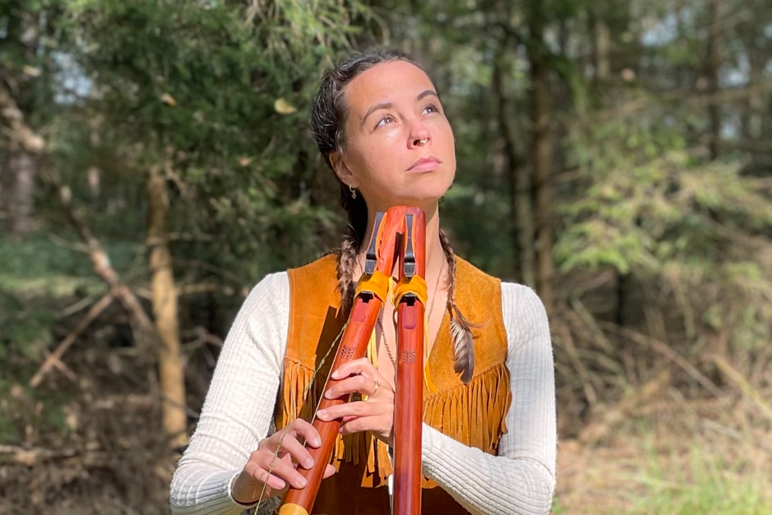 In the heart of the Wilgen Portaal, a stage woven from and with old willow trees, Nina Badoux will share a special concert that concludes the tree program at RE_NATURE. As a song receiver, she receives and performs songs entrusted to her by the trees, the soil, and the mushrooms. Like a whisper from nature itself.