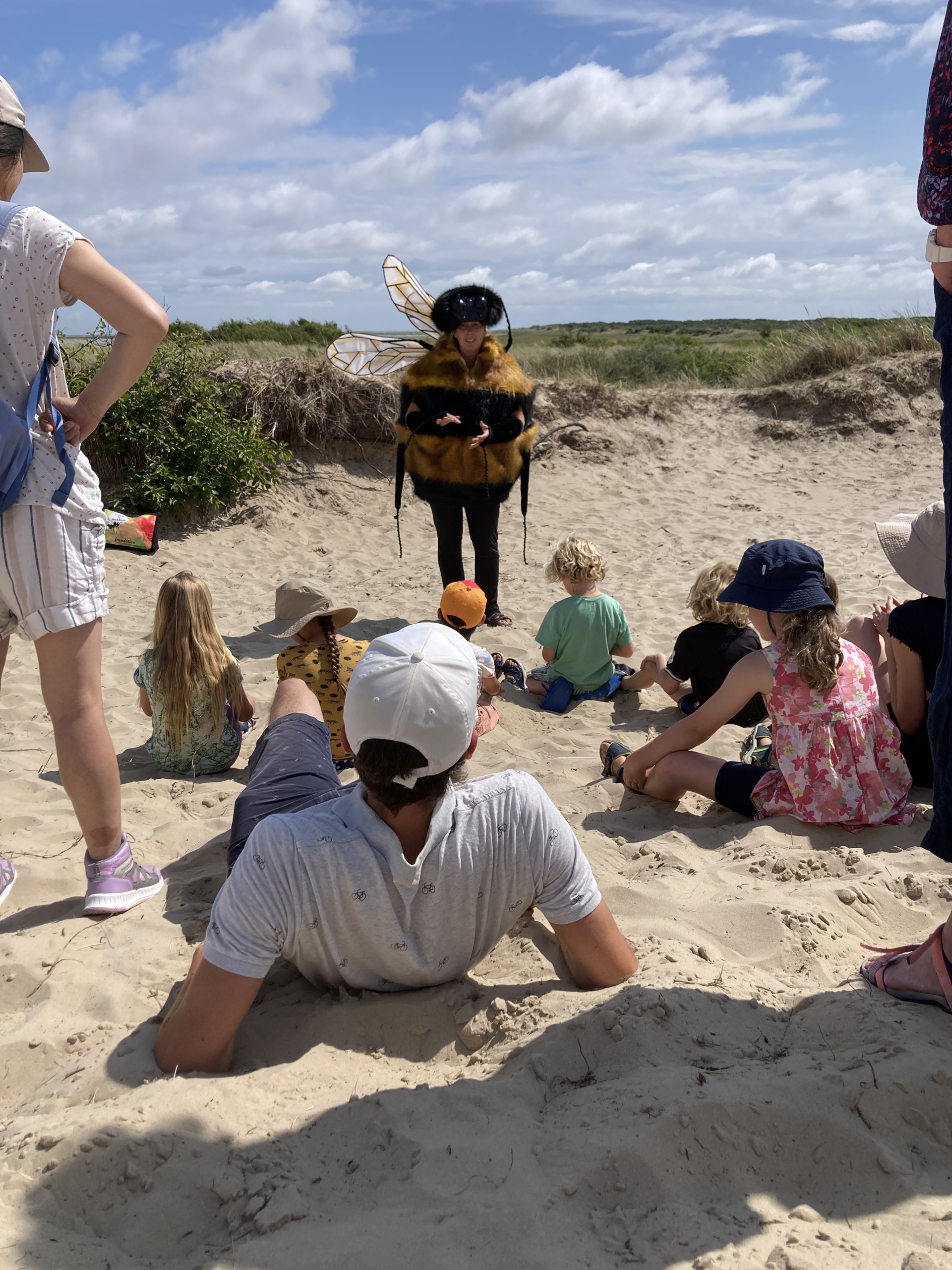 Gewapend met een expeditie-tas vlieg je als hommels uit in groepjes, op zoek naar verschillende beleefpunten die over het terrein verspreid staan. De routekaart helpt je op weg. Zet je innerlijke kompas aan en het avontuur kan beginnen. Bij ieder beleefpunt horen uitdagende opdrachten die jou steeds iets nieuws leren over het leven van de wilde bijen. Waar wonen ze? Wat vinden ze lekker? En welke soorten zijn er? O ja, wist jij bijvoorbeeld dat er van de 365 bijensoorten in Nederland maar eentje honing maakt?!”