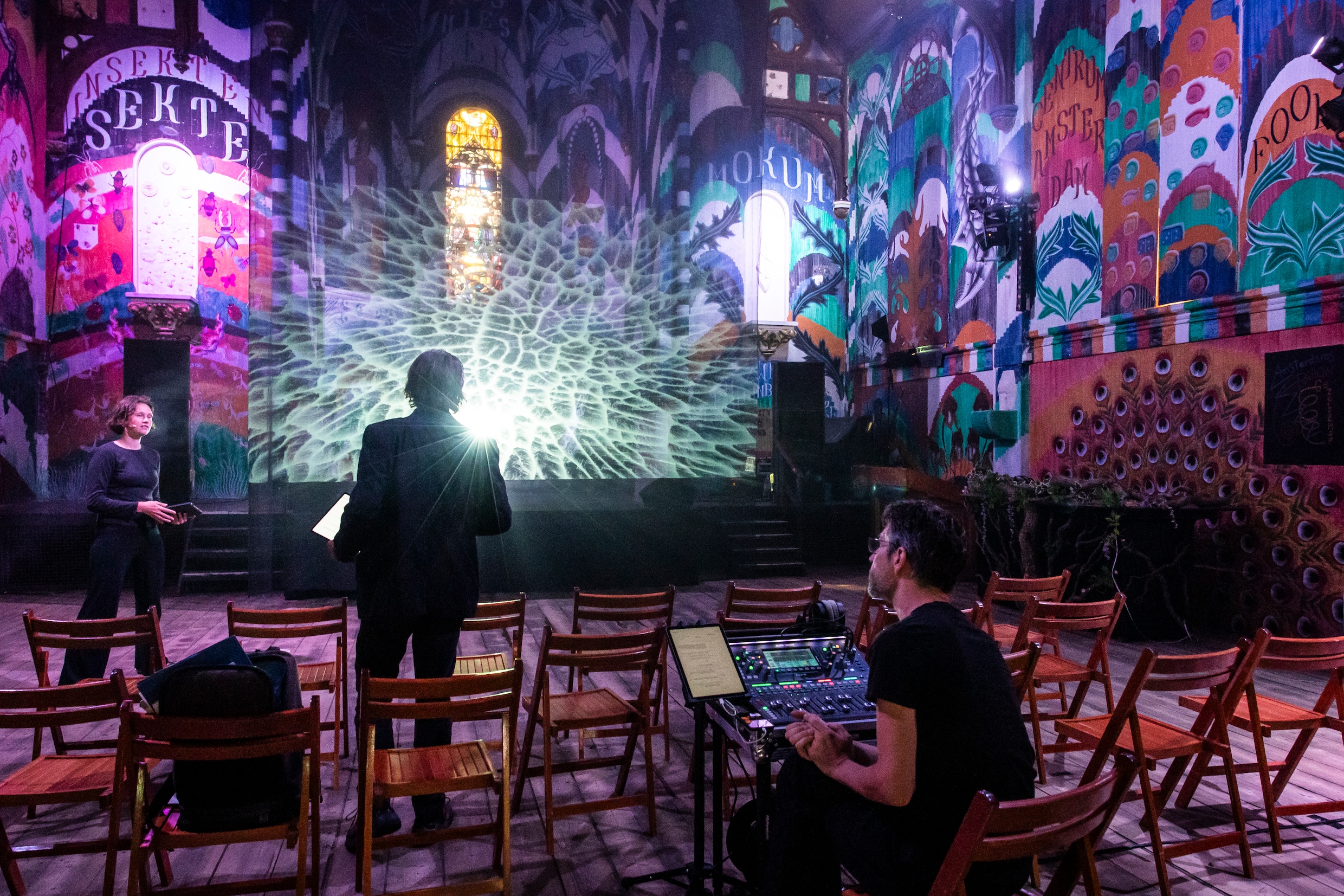 De Oase van Verwondering is zeven dagen per week gratis geopend, 24 uur per dag. Je kunt er op eigen houtje (ver)dwalen, maar Ruigrok stelde ook vier routes samen. ‘Rondje kerk’ (voor de bewegwijzering maakte ontwerper en ‘letterkunstenaar’ René Knip een speciaal ‘Ruigoordalfabet’) begint en eindigt bij de kerk, waarvan de gehele binnenkant beschilderd is door ‘muralist’ Gijs Frieling. Voordat hij begon, sprak Frieling met de oprichters, betrokkenen en kunstenaars van Ruigoord. In eendrachtige samenwerking met kunstenaars van binnen en van buiten Ruigoord, assistenten en studenten van de Hogeschool Leiden maakte hij vervolgens een eclectische muurschildering, van de vloer tot aan de nok, die de geschiedenis van Ruigoord, de inspiratie en samenwerkingen over de hele wereld toont.